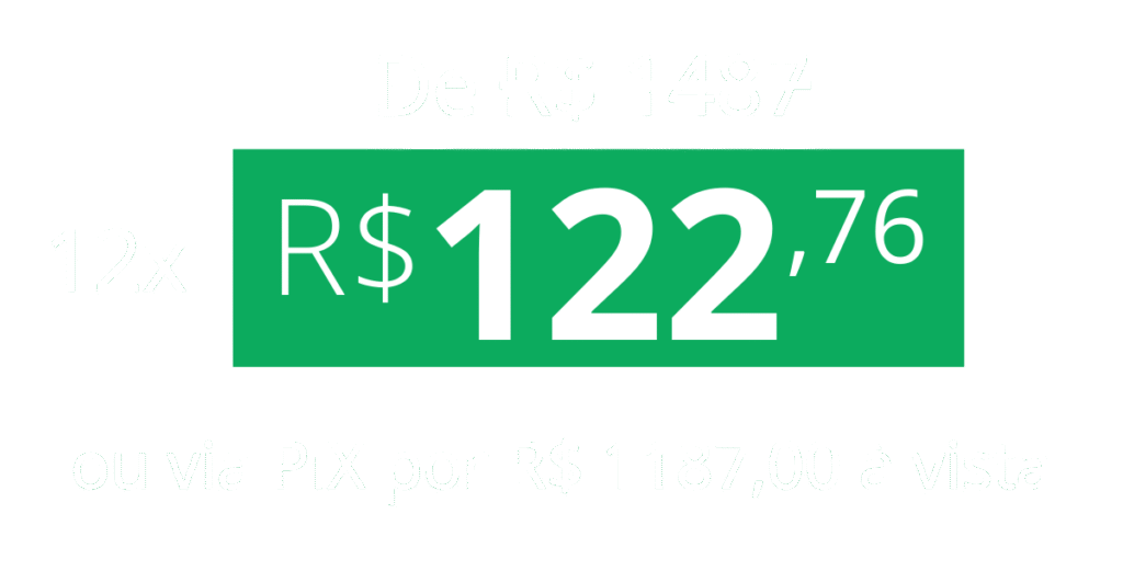 Você tem 7 dias para experimentar o programa. Se dentro desse período achar que não é para você, devolvemos 100% do valor. Sem perguntas, sem complicações.